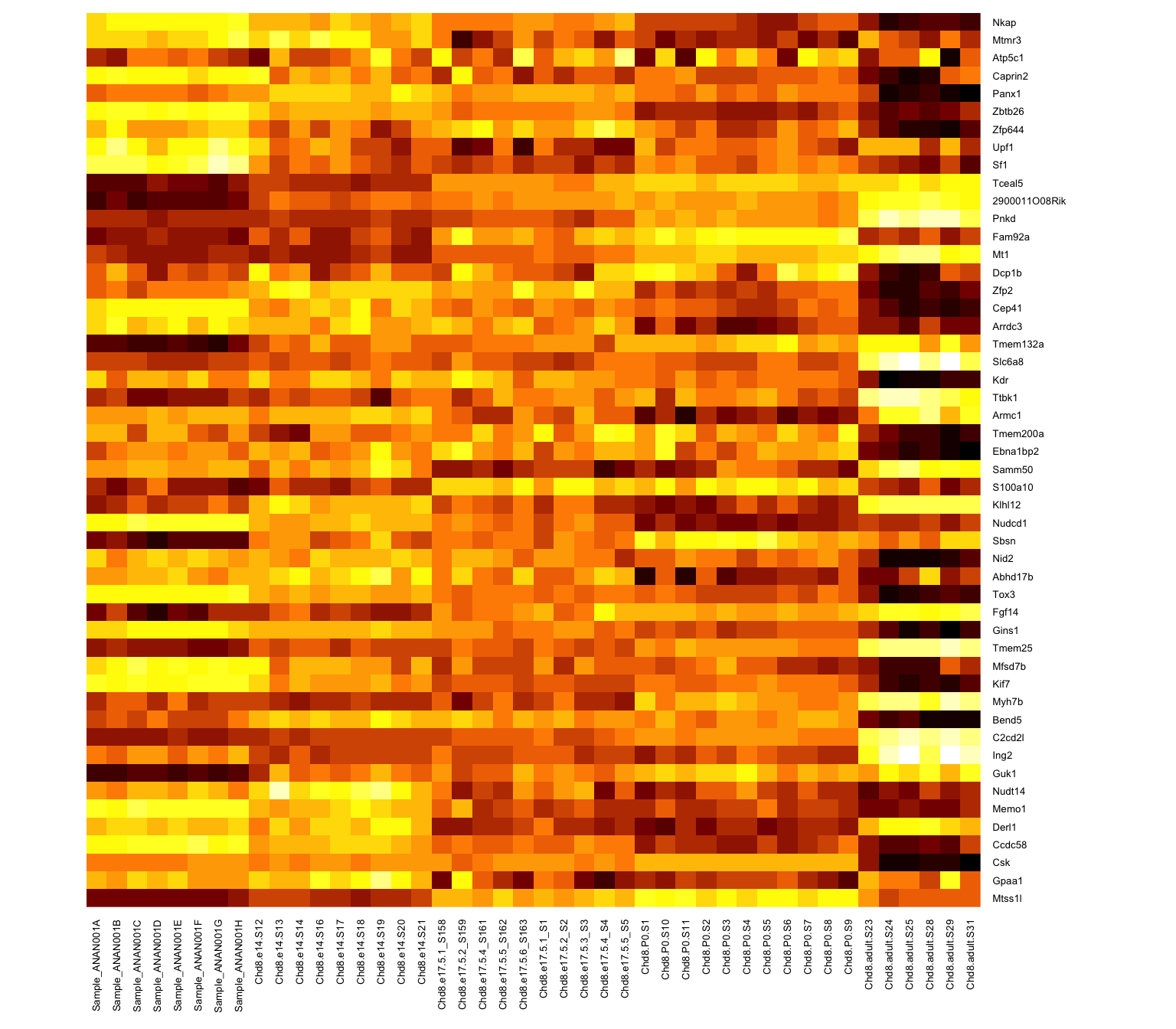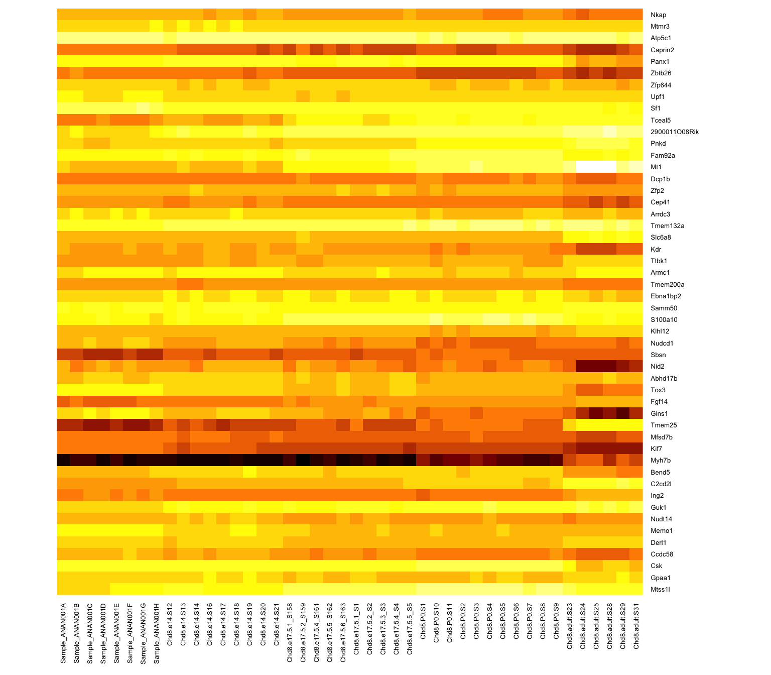 colnames(44): Sample_ANAN001A Sample_ANAN001B ... Chd8.adult.S29