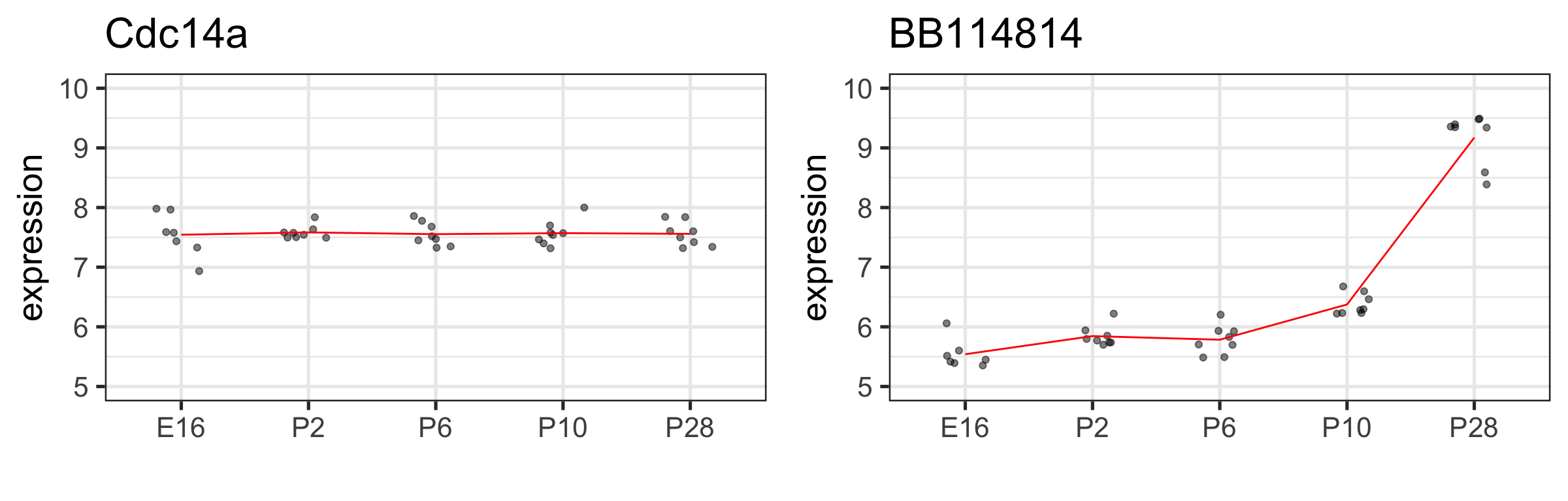 twoGenes %>%filter(gene =="BB114814") %>%lm(expression ~ dev_stage, data = .) %>%summary()